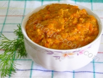 Помидоры и болгарский перец небольшим кубиком. Морковь натереть на крупной терке. Зубчики чеснока измельчить. Добавить в салат нарезанные зеленый лук и укроп.
