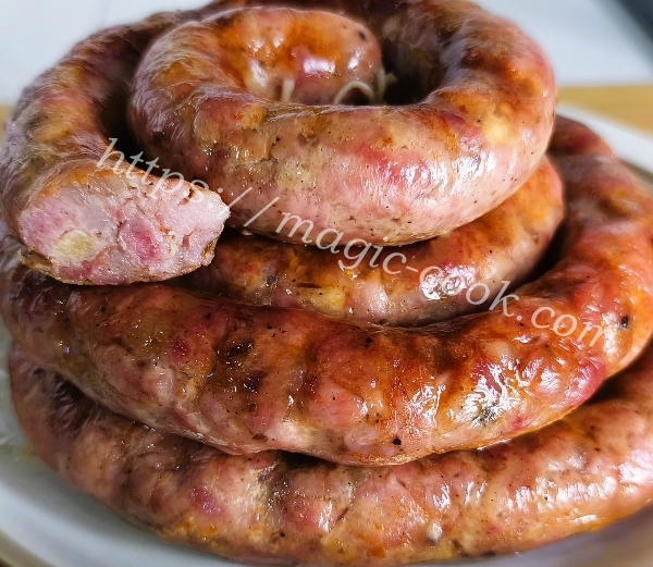 Иголкой сделать несколько проколов для выхода жидкости (чтобы колбаски не лопнули).