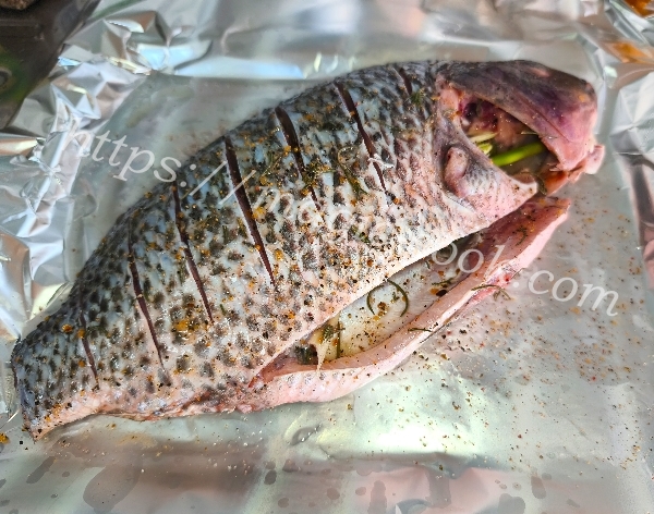 Сделать на рыбе надрезы поперёк через 2-2,5 см.